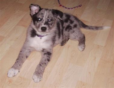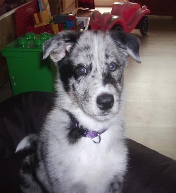 Marrys ist die Tochter einer Deutschen Schäferhündin (Nala) und eines Blue-Merle-Border-Collies (Mimo)